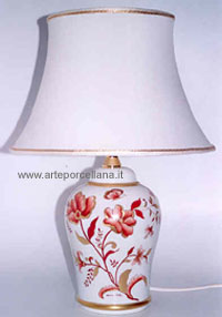Lamp with branch of flowers and butterflies in oriental style painted in monochrome and matt gold.