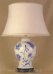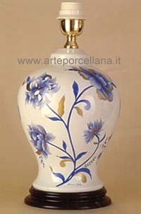 Lamp with branch of flowers in oriental style painted in monochrome and matt gold.
