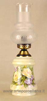 Lamp with glass, painted with yellow roses and violets