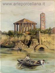 Porcelain plaque with a view of Rome, subject by R. Franz