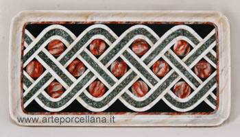 Rectangular tray with marbles marquetry effects.