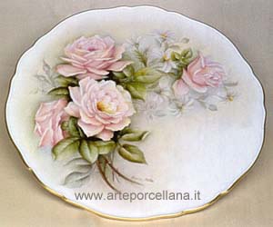 Plate with roses and daisies, finished in matt gold