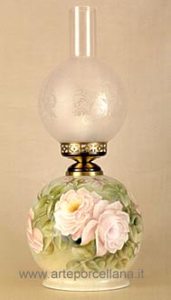 Lamp with glass, painted with pink roses